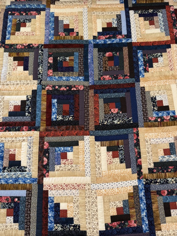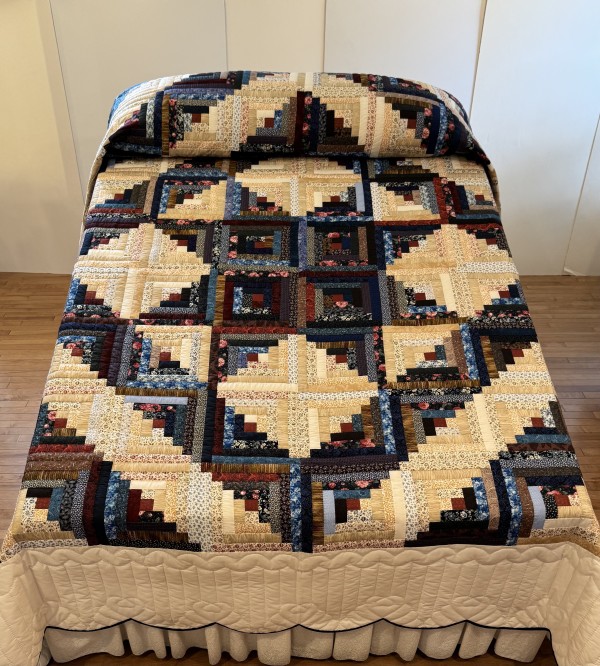 Traditionally, the center of the “cabin” features a red block for the fire or hearth, the gathering place of any home. Each "log" is accented with hand-quilting giving the quilt added loft and beauty.
