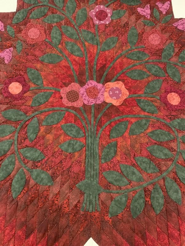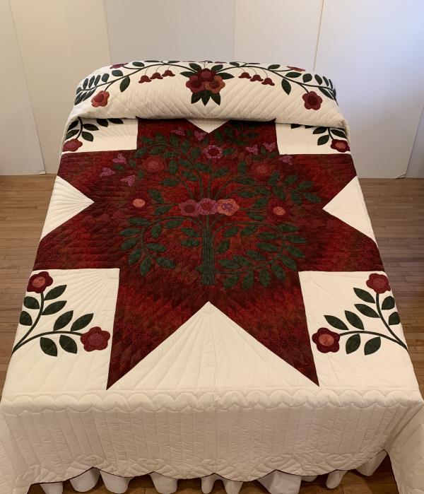 The Lone Star is a classic pattern that appeals to many buyers! It requires careful piecing for the diamonds to align perfectly and the center of the quilt to lay flat. Our Lone Star Bouquet quilts feature a bonus! Notice the special hand-applique on the pillow portion of the quilt and the beautiful bouquet showcased on the star. This design is a perennial favorite. Hand-quilted, Lancaster County, PA.