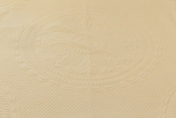 Nothing showcases hand-quilting like a Pineapple Whole-Cloth quilt! Study the intricate quilting designs, including extensive cross-hatching and carefully stitched pineapples. A whole-cloth quilt is an heirloom, indeed! Hand-quilted by an Amish friend, Lancaster County, PA.