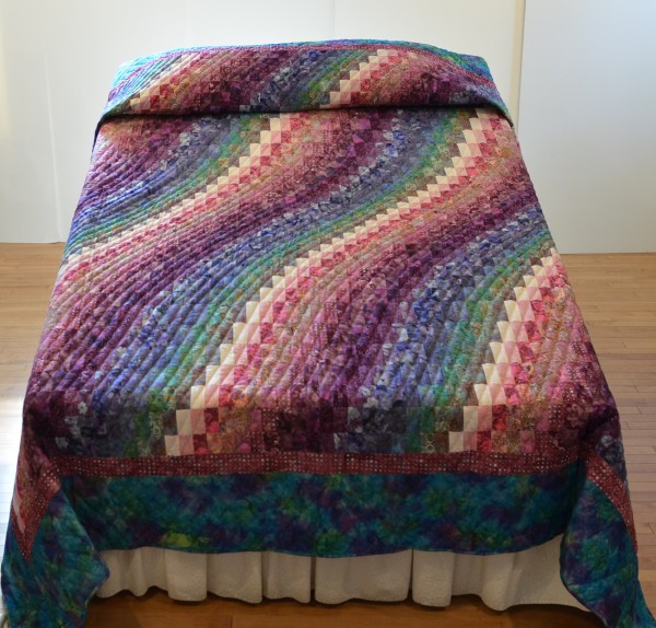 Bargello Wave is a stunning contemporary quilt with waves of color gracefully rippling across the top of the bed.
