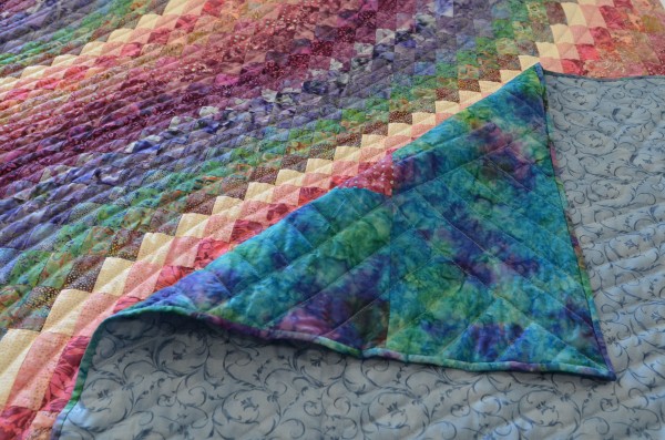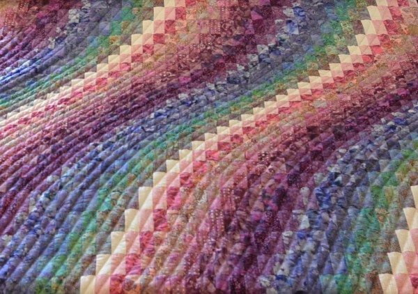 The more than 2,000 blocks are hand-quilted across the diagonal, enhancing the movement of the piece.