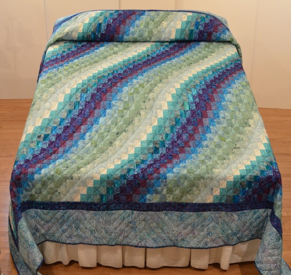 Bargello Wave is a stunning contemporary quilt with waves of color gracefully rippling across the top of the bed.