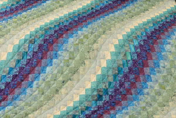 The more than 2,000 blocks are hand-quilted across the diagonal, enhancing the movement of the piece.