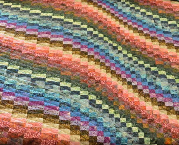The more than 2,000 blocks are hand-quilted across the diagonal, enhancing the movement of the piece.