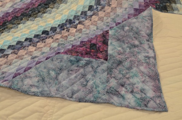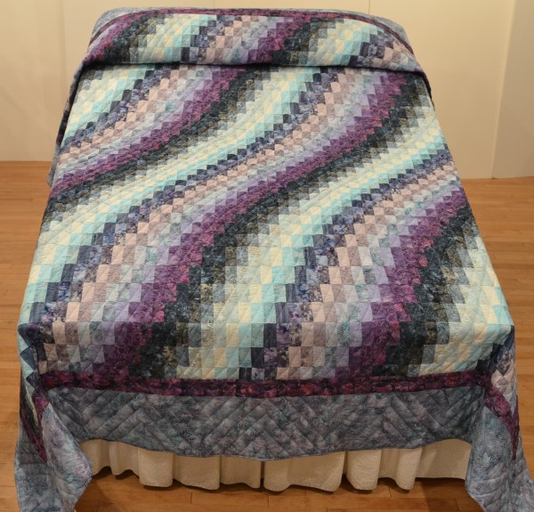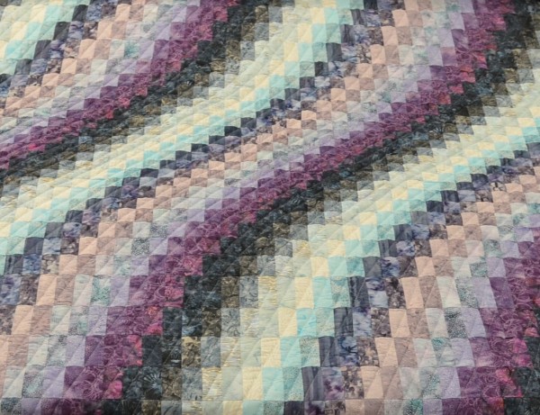 The more than 2,000 blocks are hand-quilted across the diagonal, enhancing the movement of the piece.