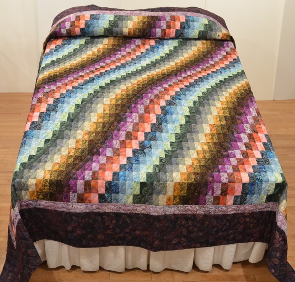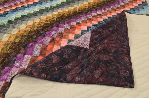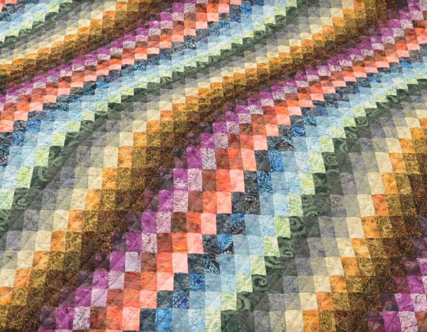 The more than 2,000 blocks are hand-quilted across the diagonal, enhancing the movement of the piece.