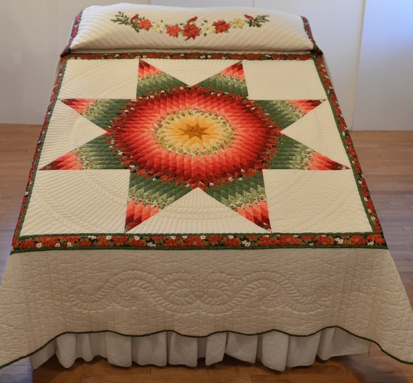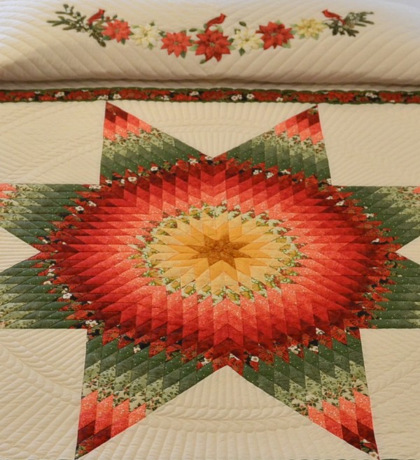 The Lone Star is a classic pattern that appeals to many buyers! It requires careful piecing for the diamonds to align perfectly and the center of the quilt to lay flat.