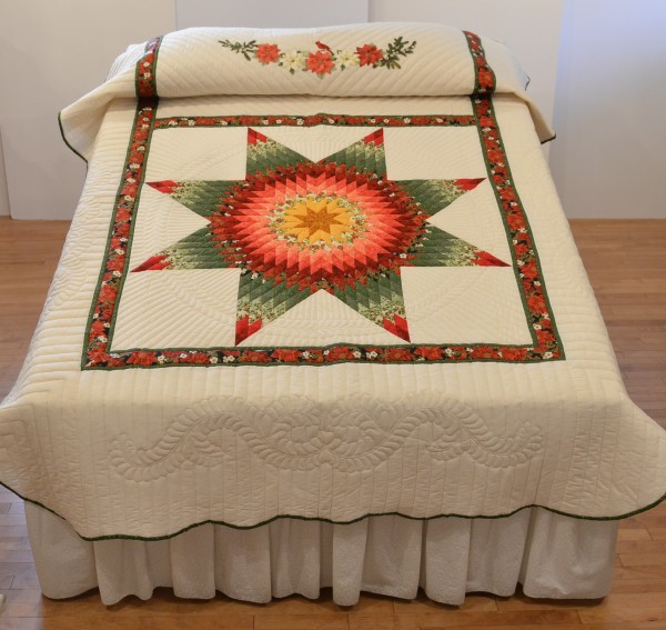 The Lone Star is a classic pattern that appeals to many buyers! It requires careful piecing for the diamonds to align perfectly and the center of the quilt to lay flat.