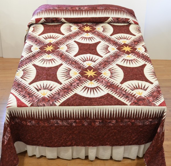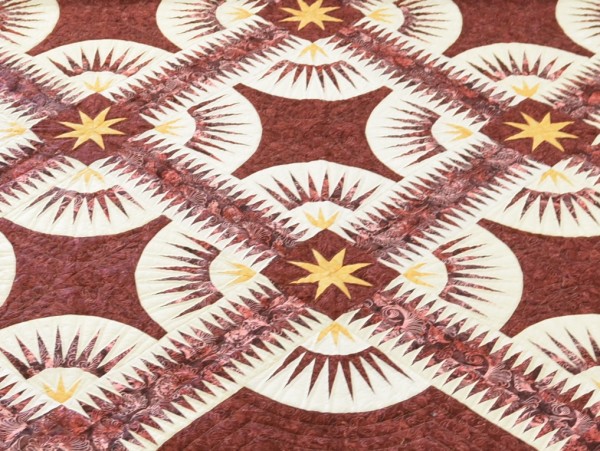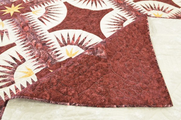 A spectacular example of precise points, the gifted work of a seasoned paper-piecing quilter, this technique requires exacting skill and yields exquisite results! Just look at those icicle points—hundreds of them--but don’t overlook the lovely hand-quilting. Hand-quilted by a Mennonite friend, Lancaster County, PA.