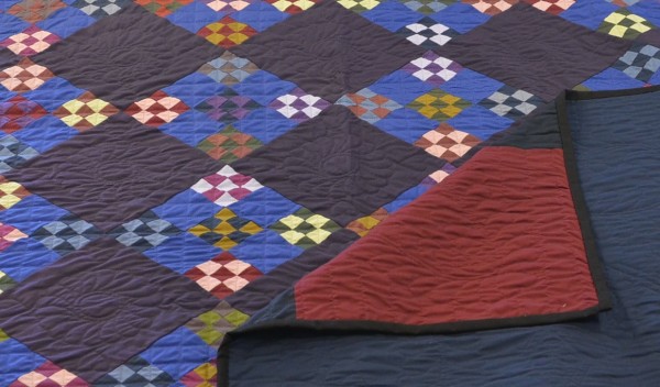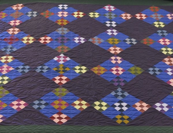 Admire the straightforward pattern and this quilter’s excellent choices in color value and placement. The basic blocks, married with a generous amount of hand-quilting create an understatedly elegant quilt!