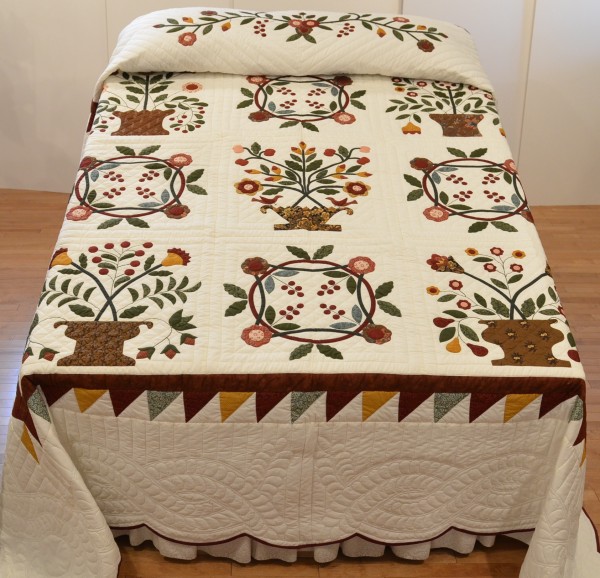Notice the sawtooth border on the king-size version and the applique border on the queen-size quilt. Own your one-of-a kind applique quilt today!