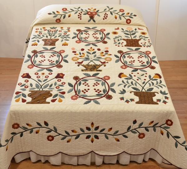 Notice the sawtooth border on the king-size version and the applique border on the queen-size quilt. Own your one-of-a kind applique quilt today!