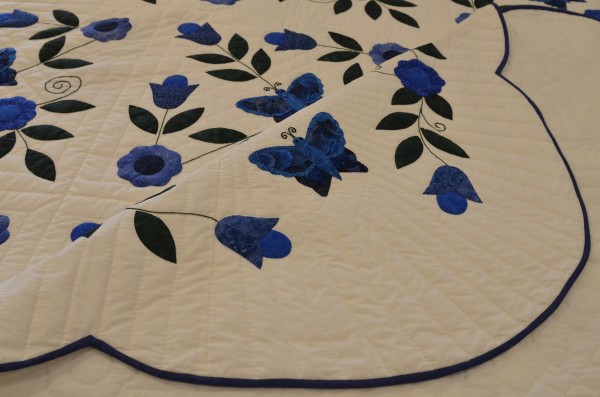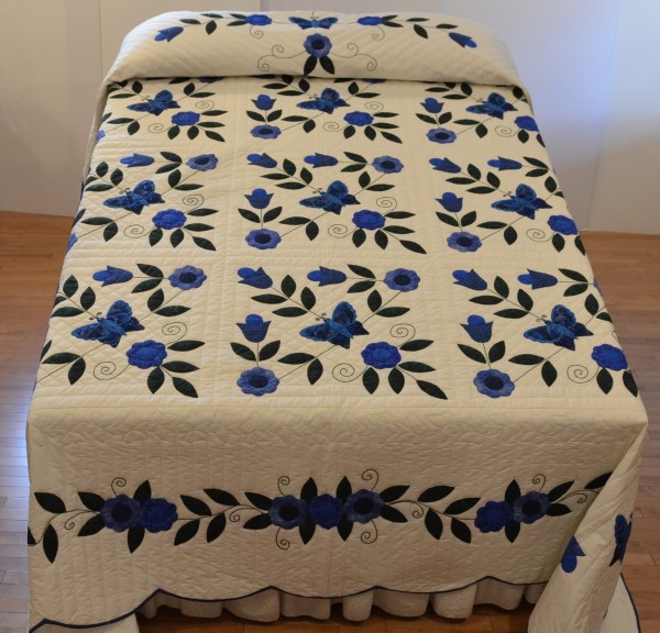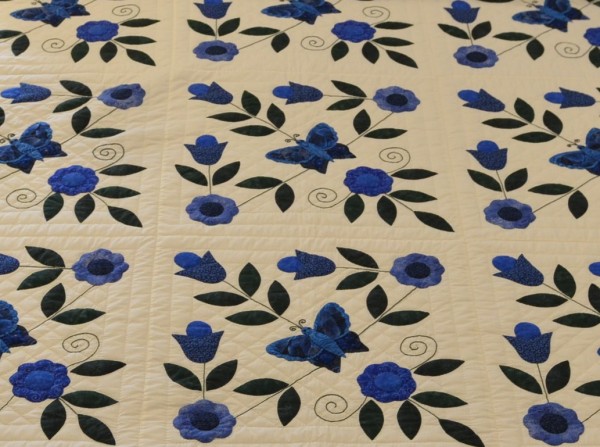 There are many, many hours of handwork on this applique quilt. Each of the butterflies, leaves, and flowers was sewn on by hand. The quilting was also done by hand.