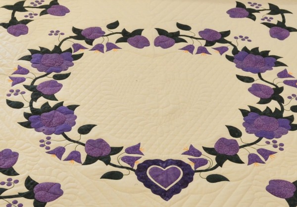 A beautiful romantic quilt design, the Heart of Roses quilt features hand-appliqued roses, leaves and berries in a pleasing heart-shaped arrangement.