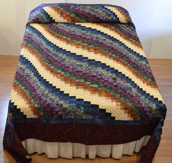 Bargello Wave is a stunning contemporary quilt with waves of color gracefully rippling across the top of the bed.