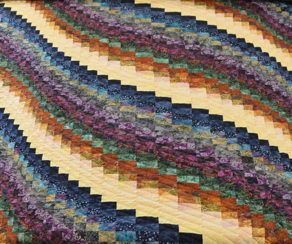The more than 2,000 blocks are hand-quilted across the diagonal, enhancing the movement of the piece.