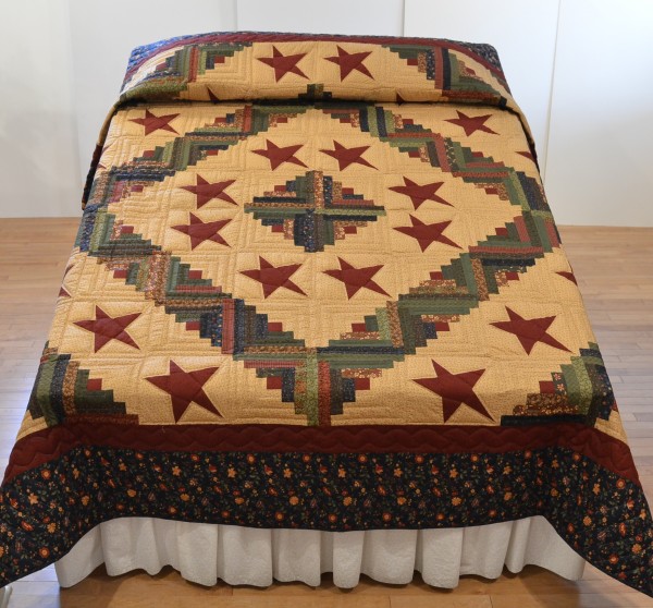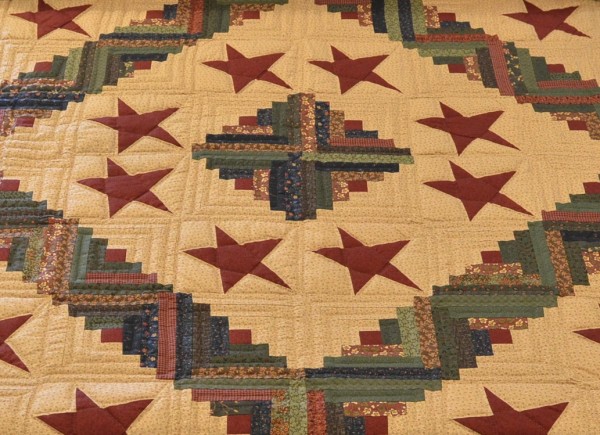 Stars are scattered amidst Log Cabin blocks to create a more primitive, country look in this visually pleasing design.