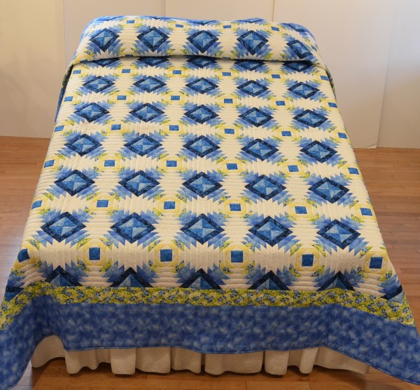The all-over design holds a lot of energy and is happily framed with both sashing and border. This pattern is always a favorite among quilt buyers for is old-fashioned appeal and modern aesthetic.