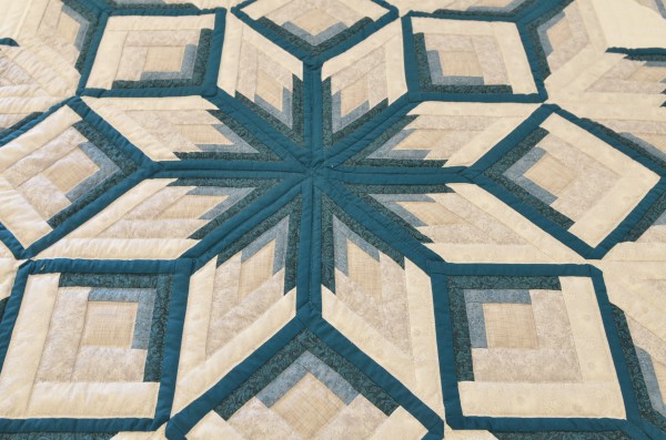 The surrounding Log Cabin blocks frame the medallion and radiate crisply out from the center. This quilt is the work of an expert piecer!