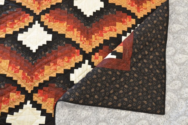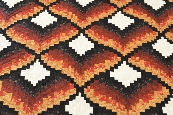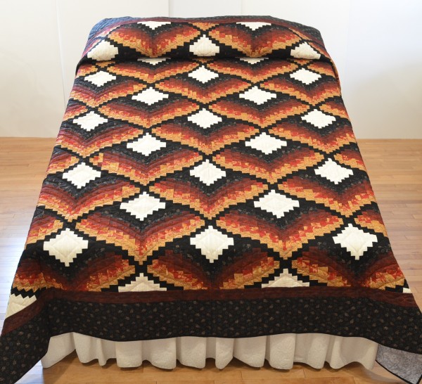 An awesome variation of the popular Bargello technique, Winter Whisper boasts elaborate piecing in an echo Bargello arrangement. The design features a generous amount of hand-quilting, making it a fine gem! Hand-quilted by a Mennonite friend, Lancaster County, PA.