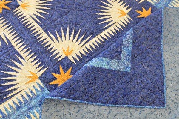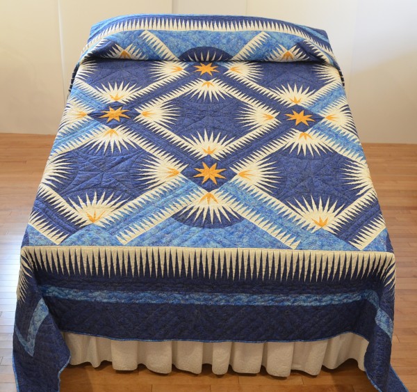 A spectacular example of precise points, the gifted work of a seasoned paper-piecing quilter, this technique requires exacting skill and yields exquisite results! Just look at those icicle points—hundreds of them--but don’t overlook the lovely hand-quilting.