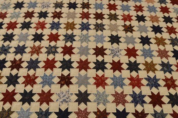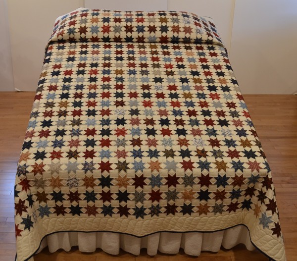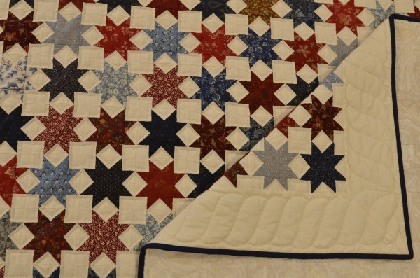 The precisely pieced stars run across the full body of the quilt, aside from a modest, but heavily quilted border.