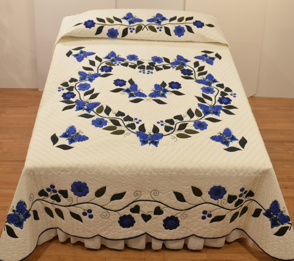 There are many, many hours of handwork on this applique quilt. Each of the butterflies, leaves, and flowers was sewn on by hand. The quilting was also done by hand.