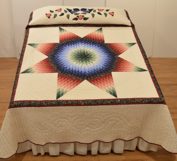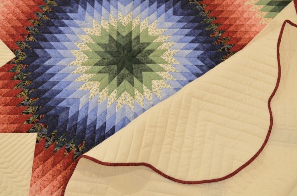 The Lone Star is a classic pattern that appeals to many buyers! It requires careful piecing for the diamonds to align perfectly and the center of the quilt to lay flat.