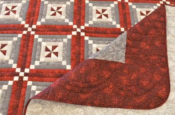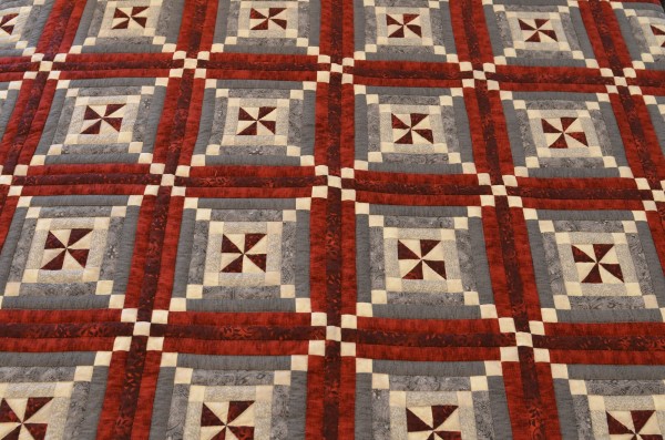 The best feature is the checkerboard effect from the little blocks that run diagonally through the body of the quilt, adding energy and punch to the traditional design.