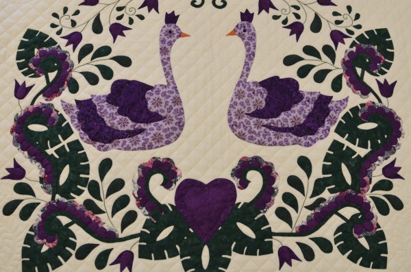 The applique detail is included on the pillow throw portion, both side borders, the bottom border, and the center portion of the quilt. Lovely!