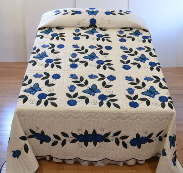 There are many, many hours of handwork on this applique quilt. Each of the butterflies, leaves, and flowers was sewn on by hand. The quilting was also done by hand.