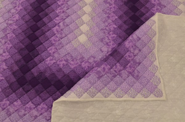 Generally designed from one or two color families, the overall design is understated. The blocks ripple out from the center to the border, with values of color repeating for a striped effect.