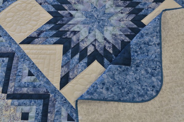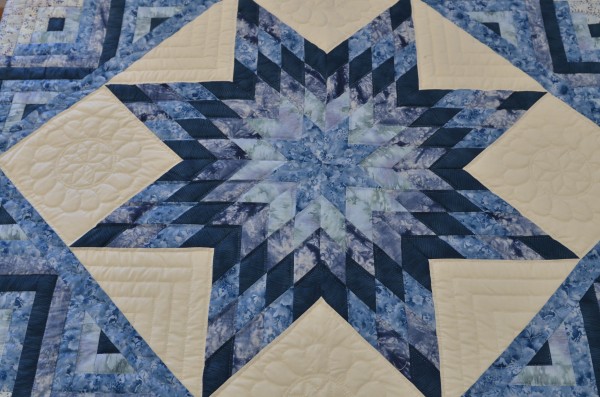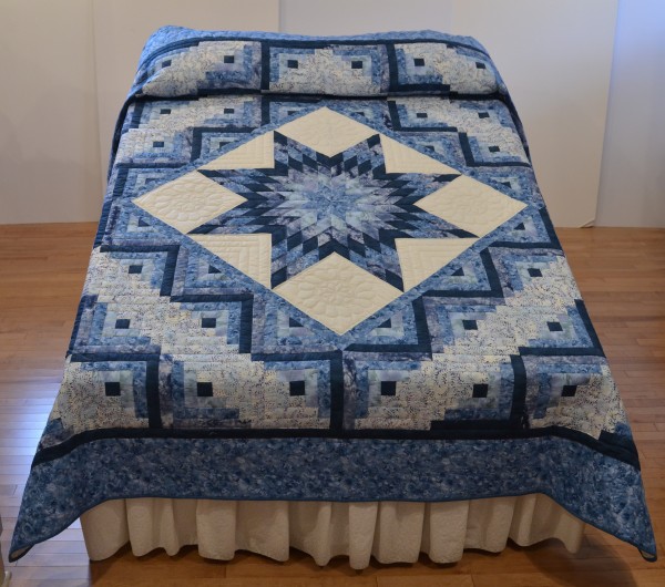 In this clever variation, the log cabin blocks frame a central Lone Star. Stunning!