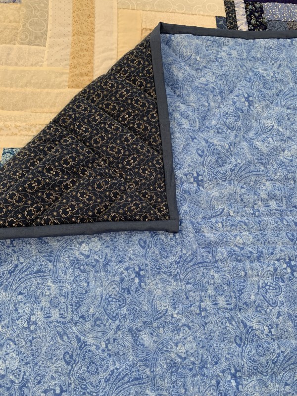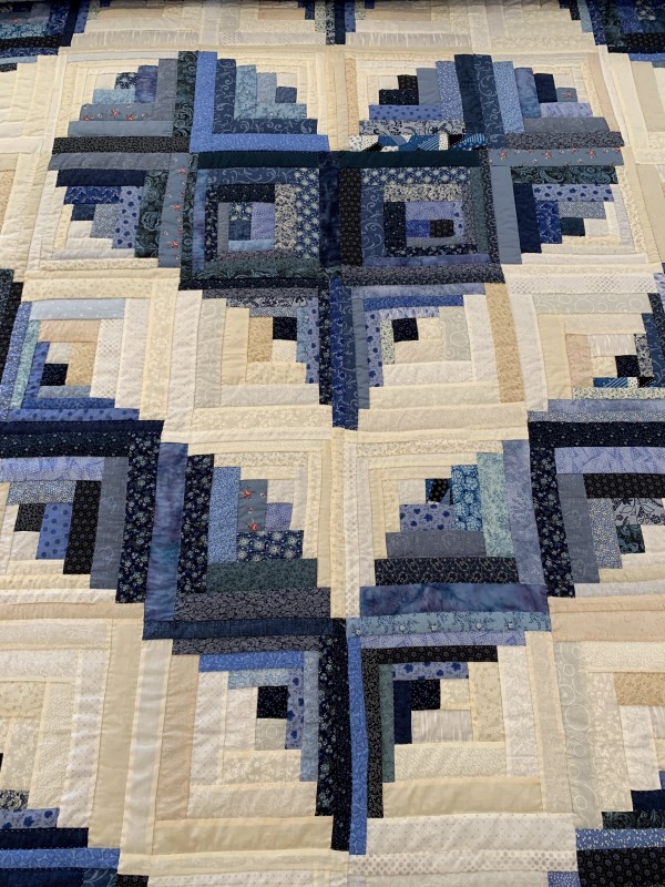 The familiar Log Cabin block is arranged using expert color choices to create the shape of a radiating heart! Hand-quilted by a Mennonite friend, Lancaster County, PA.