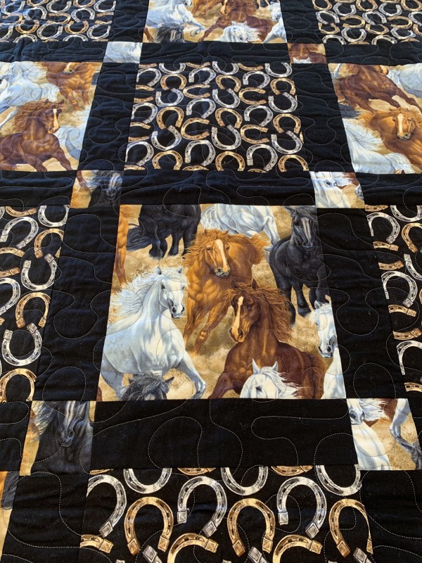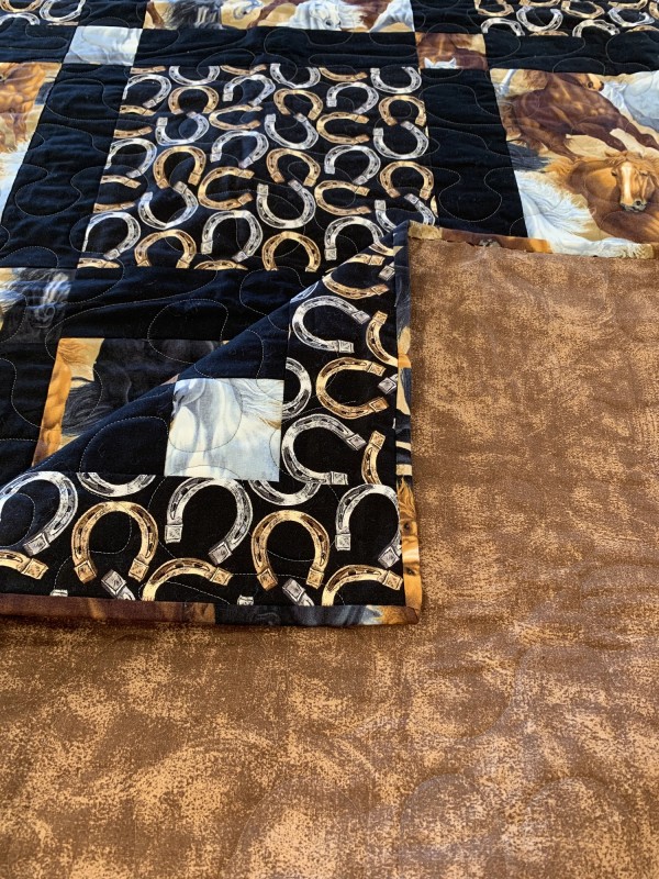 A hand-made throw quilt makes a great addition to any room of your home! Please note, this quilt features machine quilting. Hand-made by a friend, Lancaster County, PA.