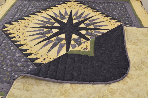 The bed skirt portion features Compass points and is a stunning accent to the overall design. The workmanship required to make this quilt is not for a beginner!