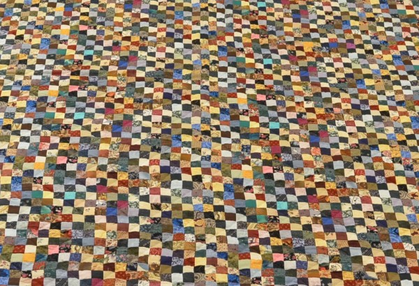 Thousands of small postage stamp-sized pieces all work together in this stunning quilt! The quilt-maker's artful placement of color creates a visually pleasing design.