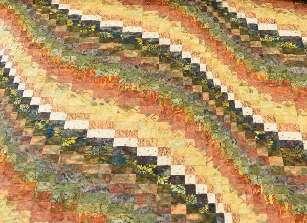 The more than 2,000 blocks are hand-quilted across the diagonal, enhancing the movement of the piece.