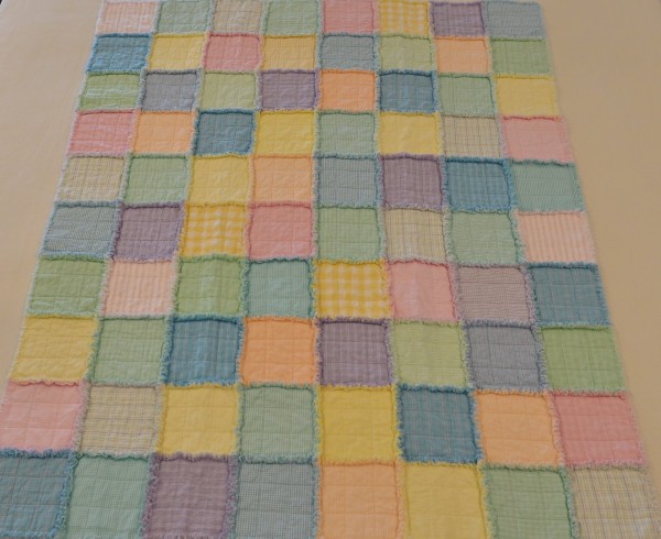 This crib quilt, made of flannel fabrics, is soft and cuddly!
