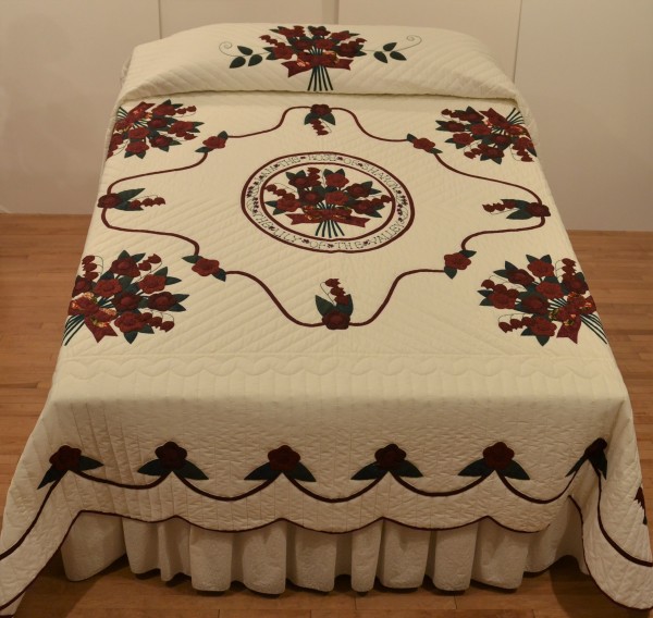 Adorned with multiple bouquets of Lily of the Valley flowers, this quilt is a fantastic example of hand-applique workmanship.