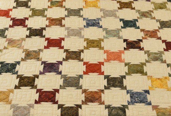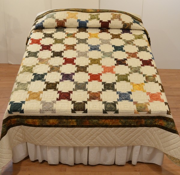 A less common pattern, Farmhouse Square features precisely pieced corners and extensive hand-quilting.