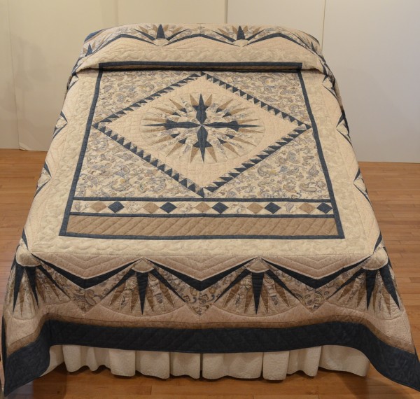 The bed skirt portion features Compass points and is a stunning accent to the overall design. The workmanship required to make this quilt is not for a beginner!