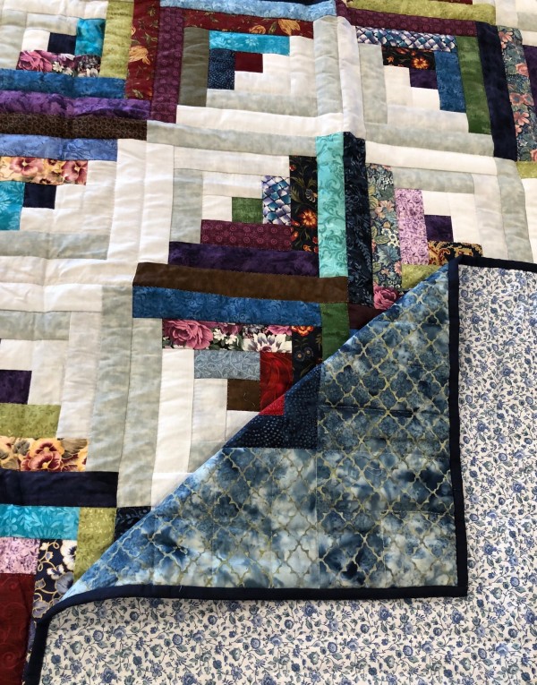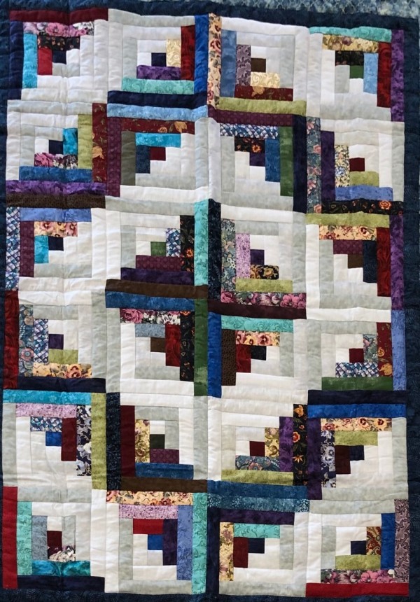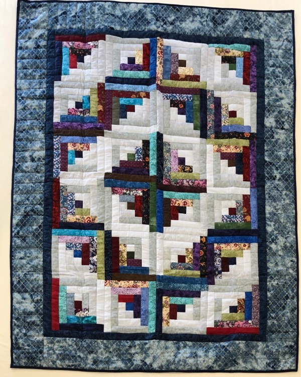Traditionally, the center of the “cabin” features a red block for the fire or hearth, the gathering place of any home. Each "log" is accented with hand-quilting giving the quilt added loft and beauty.