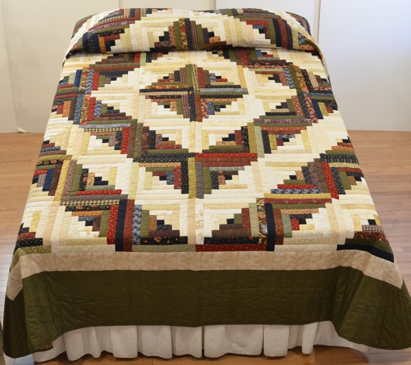 Traditionally, the center of the “cabin” features a red block for the fire or hearth, the gathering place of any home. Each "log" is accented with hand-quilting giving the quilt added loft and beauty.