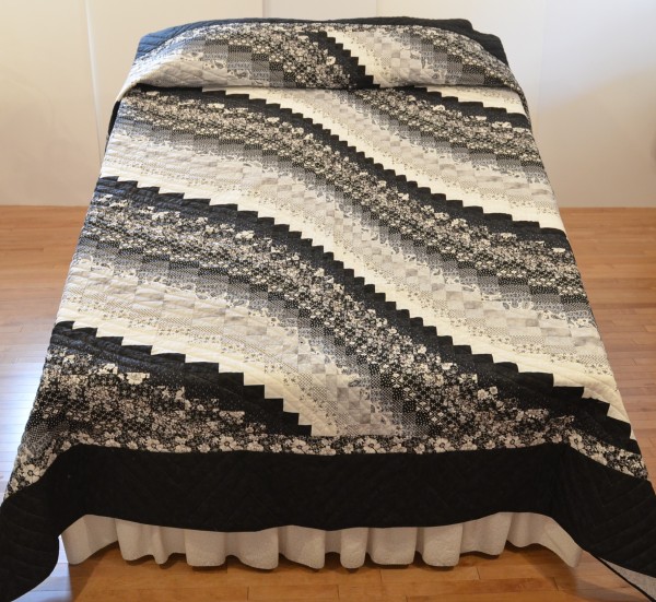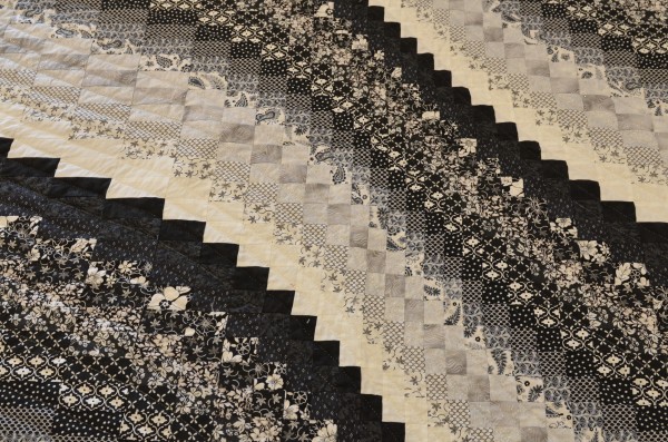 The more than 2,000 blocks are hand-quilted across the diagonal, enhancing the movement of the piece.