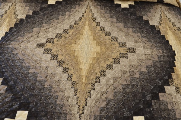 This more recently created version of Bargello piecing is pleasing to view both up close and from a distance. It’s many, many pieces and the attention to detail for placement make it the work of a master quilter.
