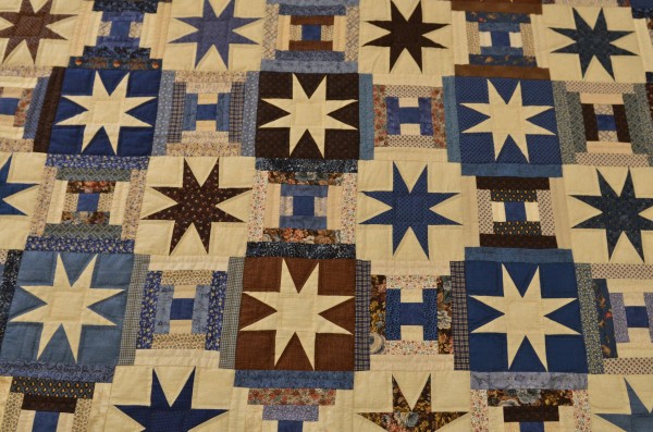 The popular Courthouse Steps block is an attractive partner with the 8-point star block. The two happily dance across the body of this quilt, framed with sashing and border.