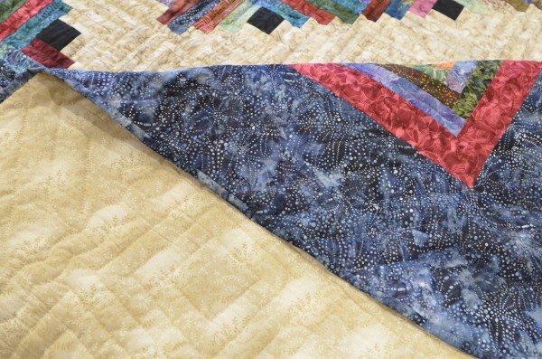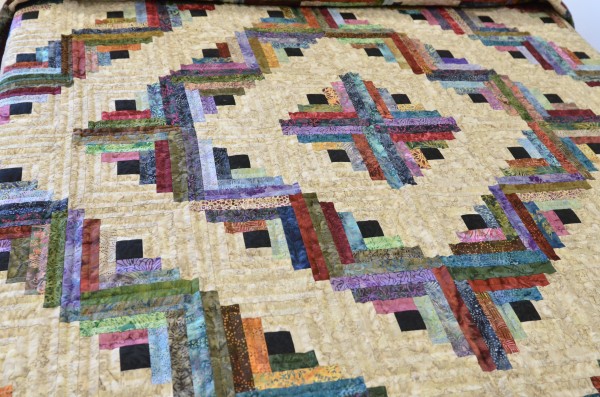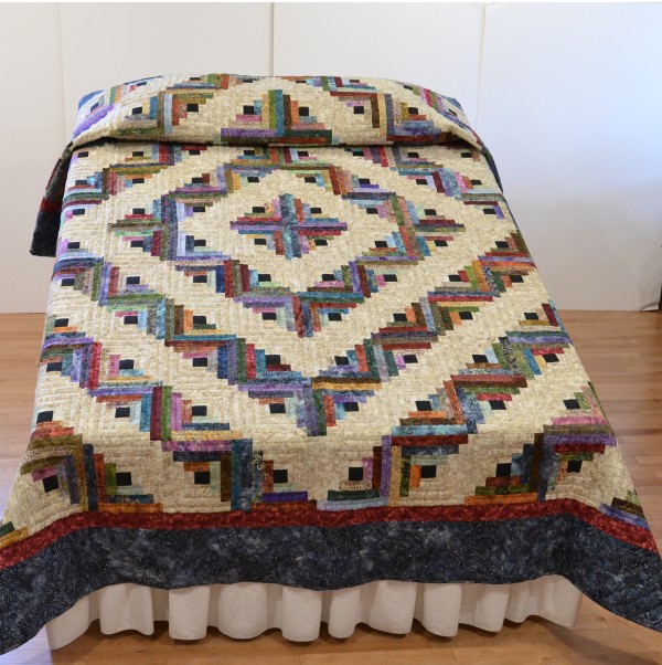 Traditionally, the center of the “cabin” features a red block for the fire or hearth, the gathering place of any home. Each "log" is accented with hand-quilting giving the quilt added loft and beauty.