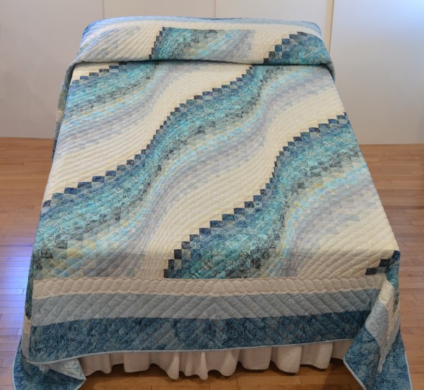 Bargello Wave is a stunning contemporary quilt with waves of color gracefully rippling across the top of the bed.