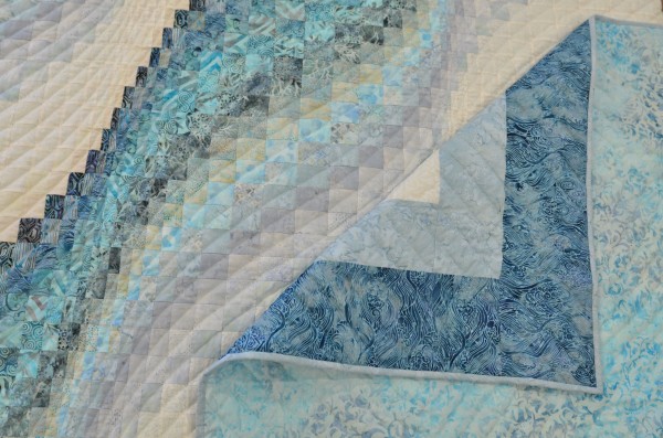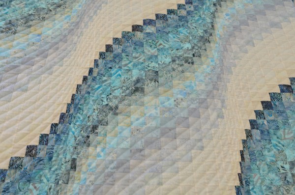 The more than 2,000 blocks are hand-quilted across the diagonal, enhancing the movement of the piece.